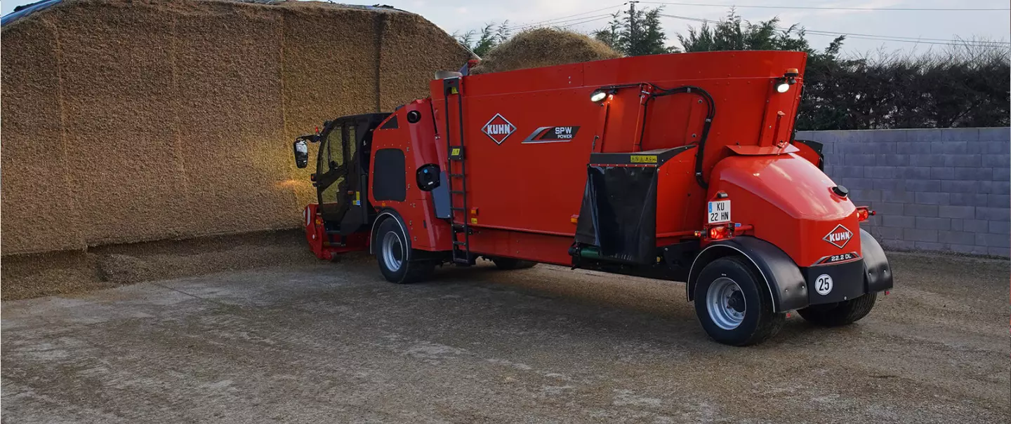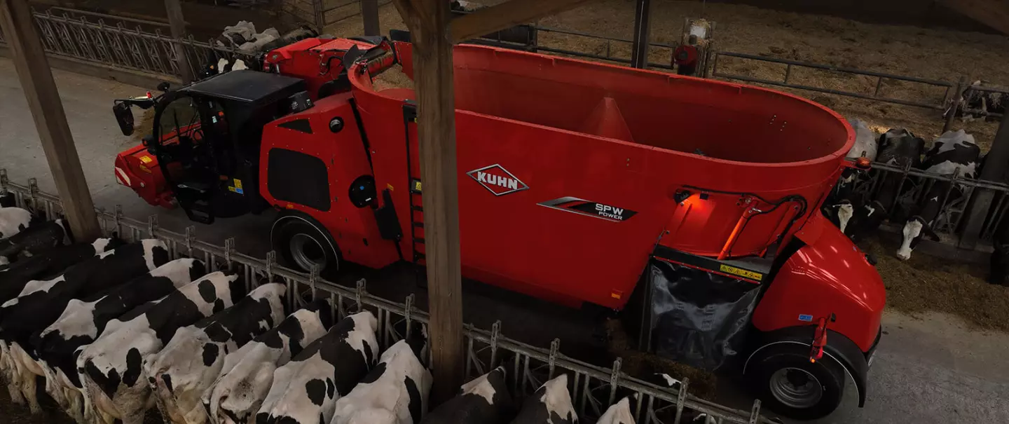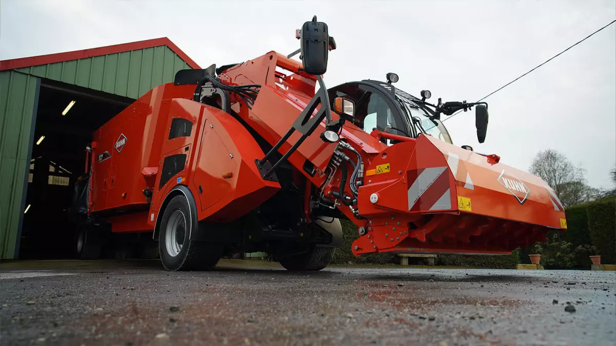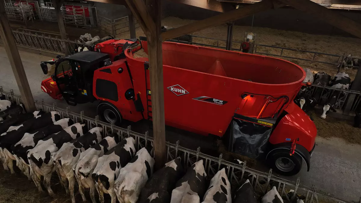 A silótartály lábának megközelítési mérése szintén kizárólag a KUHN önjáró keverőgépekre jellemző. A silótartály lábához közeledve a szállítópálya süllyedési sebessége csökken, hogy simán érkezzen le a talajra. Kíméli a silótartály padlózatát, csakúgy, mint a gép aprítószerkezetét és szállítószalagját.