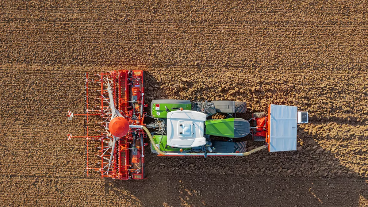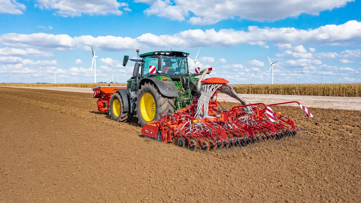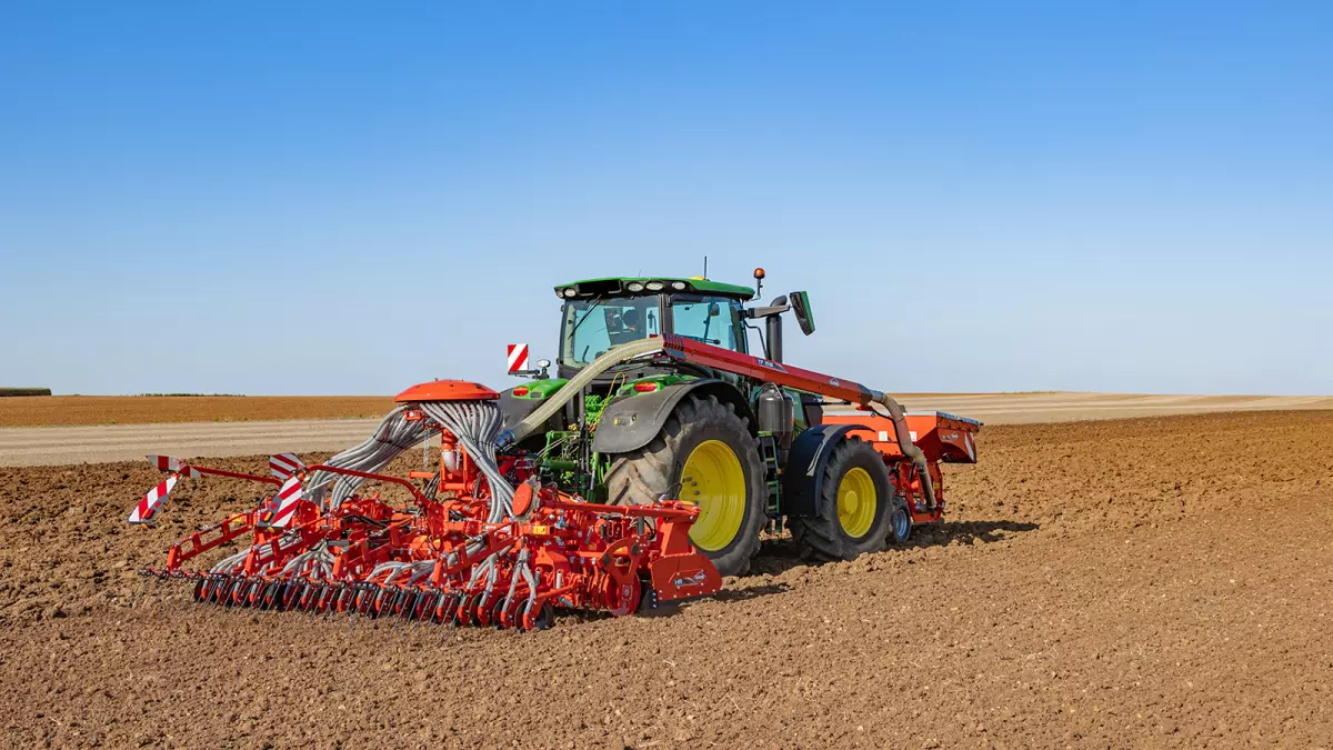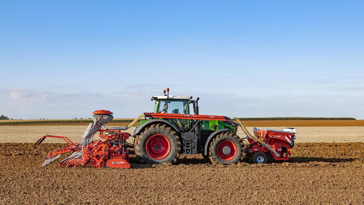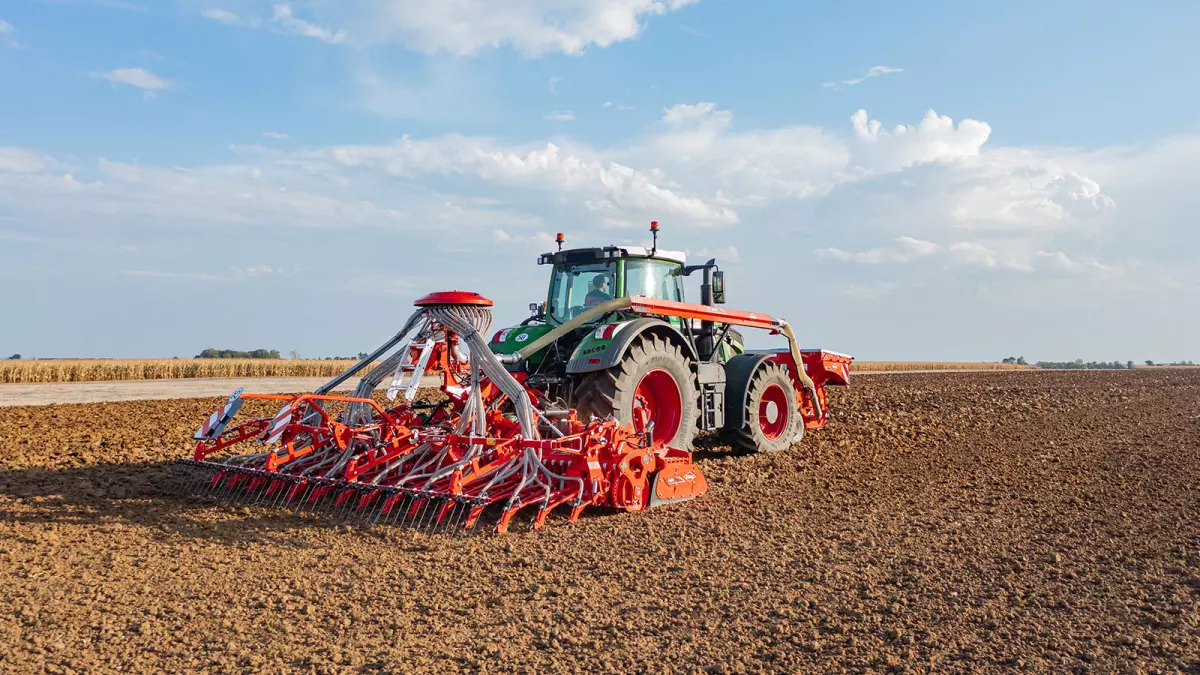 A KUHN forgóboronákon egy speciális kialakítású csatlakozó rész áll rendelkezésre a vetőgerendely szerszám nélküli csatlakoztatásához. A túlnyúlás csökkentéséről hidraulikus összekötőrudak gondoskodnak. Ezen túlmenően a vetőgerendely felhajtható, ha csak a forgóboronával kell dolgozni, vagyis nem kell leszerelni a vetőgerendelyt.