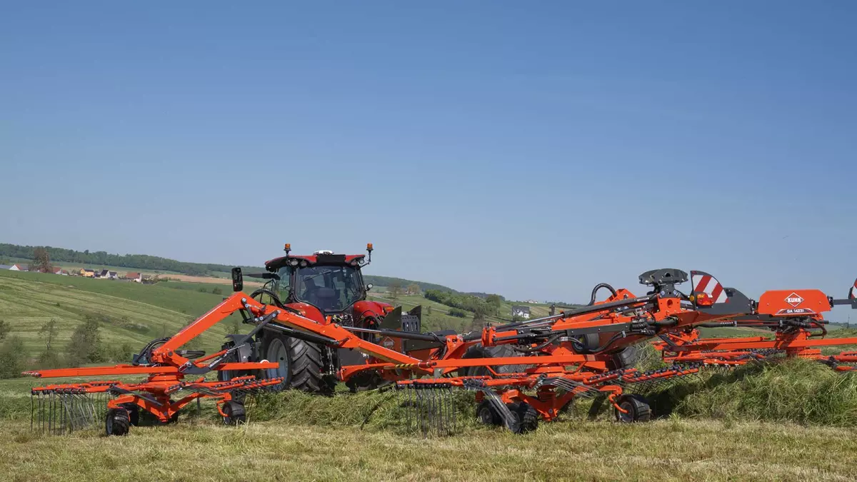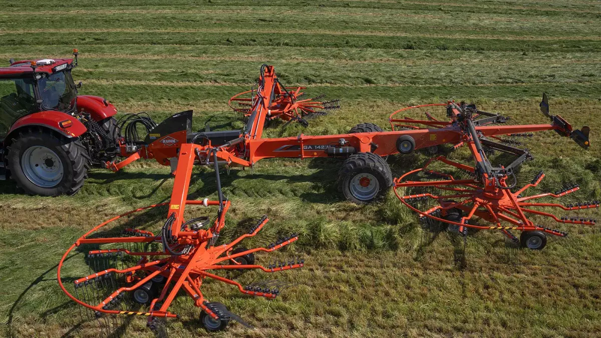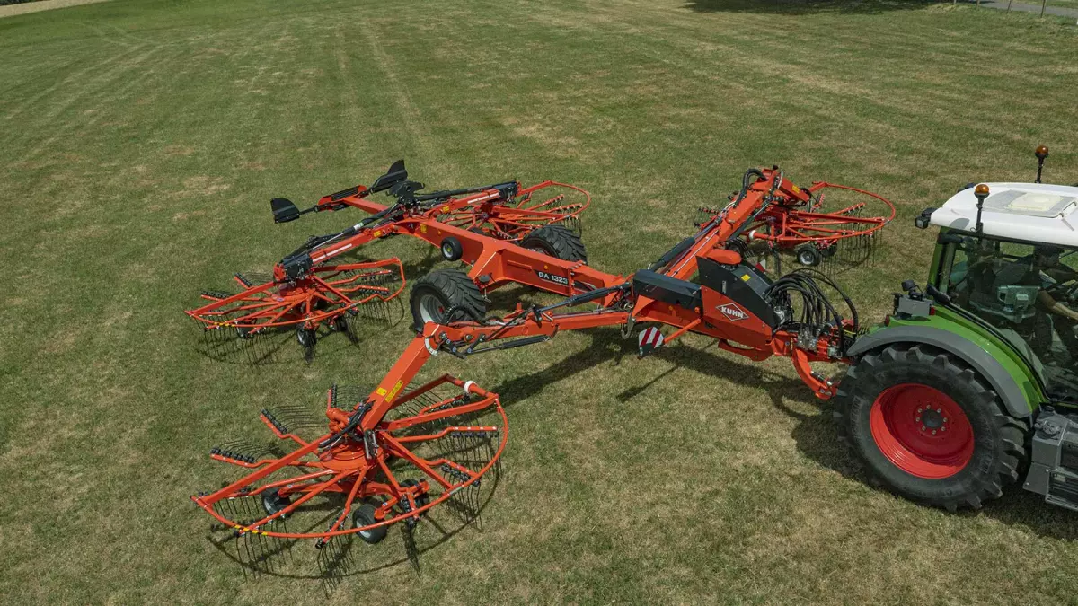 Egy órával kevesebb karbantartás, egy órával több rendképzés! A rotorok hidraulikus hajtása hidraulikaszivattyúk által valósul meg, amelyek működtetéséről – a minimális karbantartás érdekében – egyetlen hajtómű gondoskodik. Felejtse el a másodlagos hajtóművek napi szintű zsírzását. Akár egy órát is megtakaríthat naponta egy hasonló méretű, mechanikus rotorhajtású géppel összehasonlítva. Ez nagy különbség lehet, amikor közelgő eső fenyeget, és minél előbb be kell hozni a terményt. A hidraulikus hajtással csökkentheti a karbantartás időszükségletét. További előnyt jelent a finom, csendes működés és az elhasználódás minimális mértéke. A GA 13231 és GA 15231 típusú rendképzők hidraulikus egysége a gépváz csuklós csatlakozószerkezetén helyezkedik el. Ez a megoldás biztosítja, hogy az elsődleges hajtómű mindig tökéletesen a traktor vonalában legyen, még szűk fordulókban is. Ezen kívül a termény típusához és mennyiségéhez történő tökéletes alkalmazkodás érdekében a TLT fordulatszáma a traktorfülkéből állítható. Két fordulatszám közül lehet választani: 1000 vagy az üzemanyag-takarékos 750 ford./perc